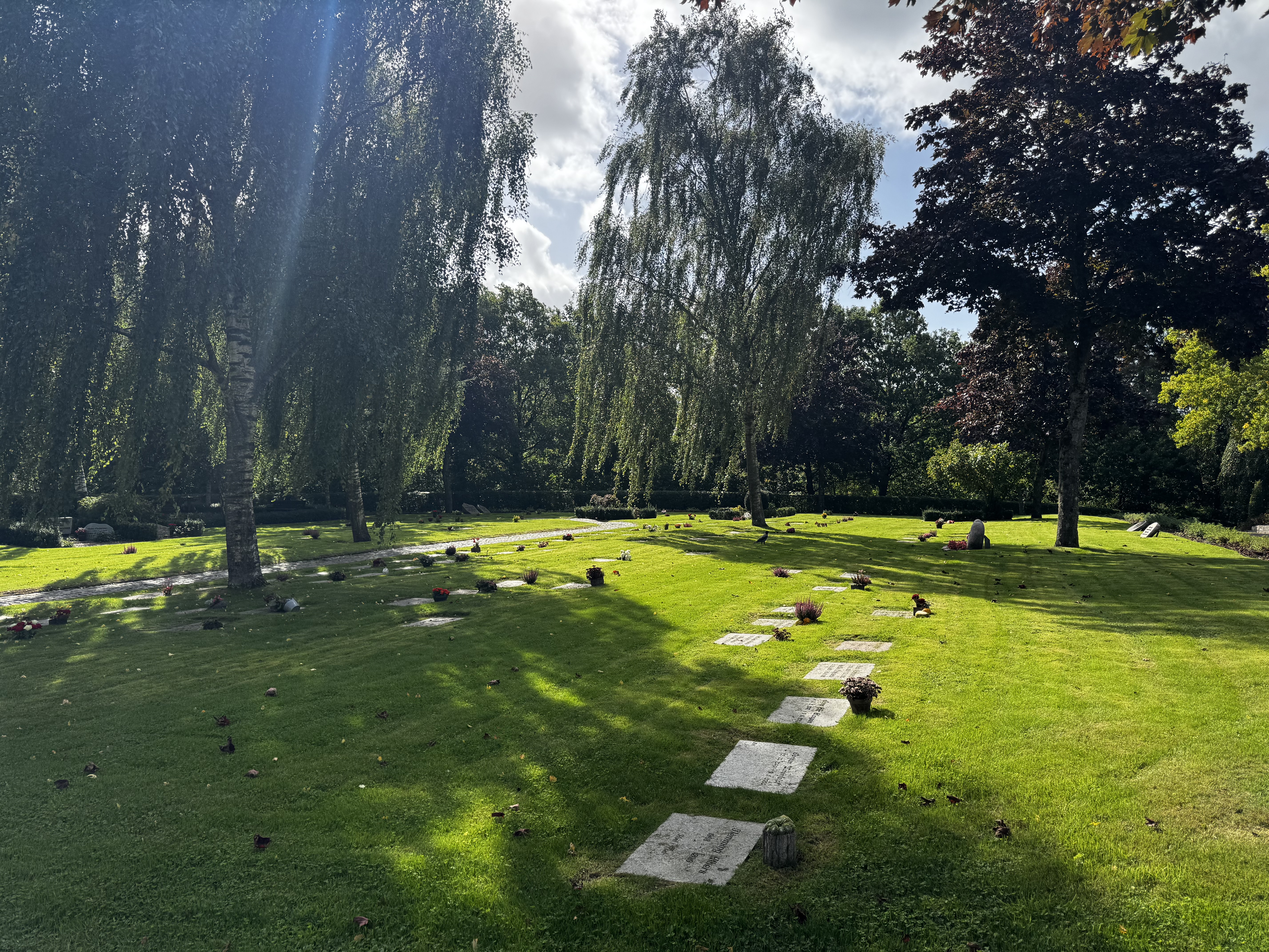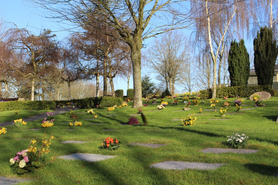 Urnegravsted i græs med gravsten eller nummer